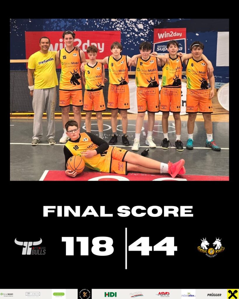 Unsere U16 musste sich den Kapfenberg Bulls mit 118:44 geschlagen geben.